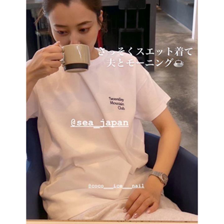 「子どもたちの送りを夫婦2動線で済ませた後、自転車でカフェに再集合! SEAのスウェットがお気に入り」原田夏希さん(VERYモデル)