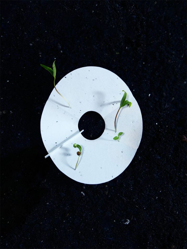 今回の展示は植物を育てるために特別に開発されたシードペーパーからできたオブジェ「Semis」が主役。
