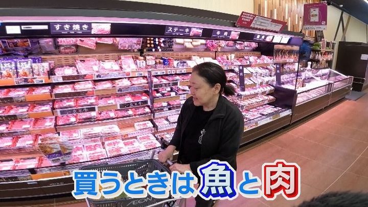 夫と孫の料理2つ作るため、買い物に来ると魚と肉を買います。