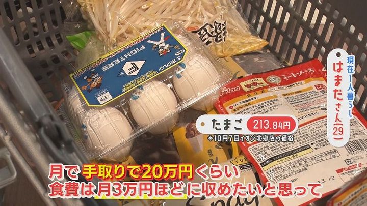 はまださん:「月の手取りで20万円くらい。食費は月3万円位に収めたい。値段は気にするけど、近場のスーパーだけで済ませます」