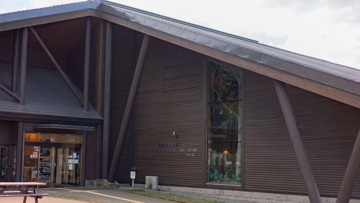 支笏湖ビジターセンターは、景色に溶け込むシックな木の外壁が特徴的な平屋建ての施設です。