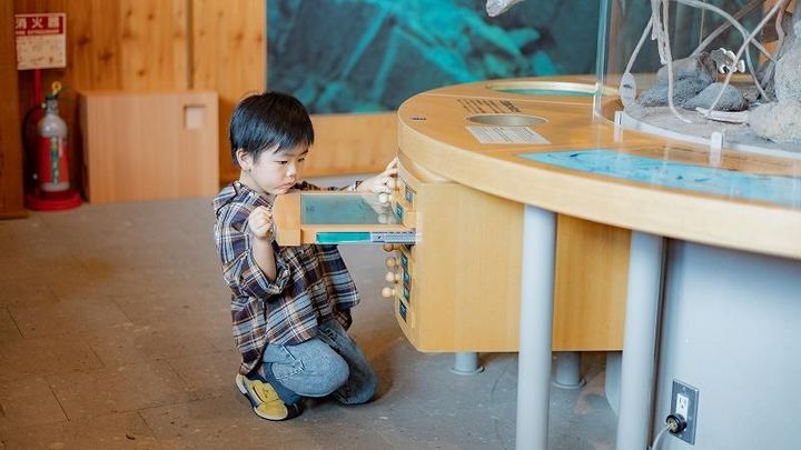 特に子どもたちにおすすめなのは、押すと音や映像が流れるボタン、標本が見れる引き出し、引っ張って動かせる魚の模型など。