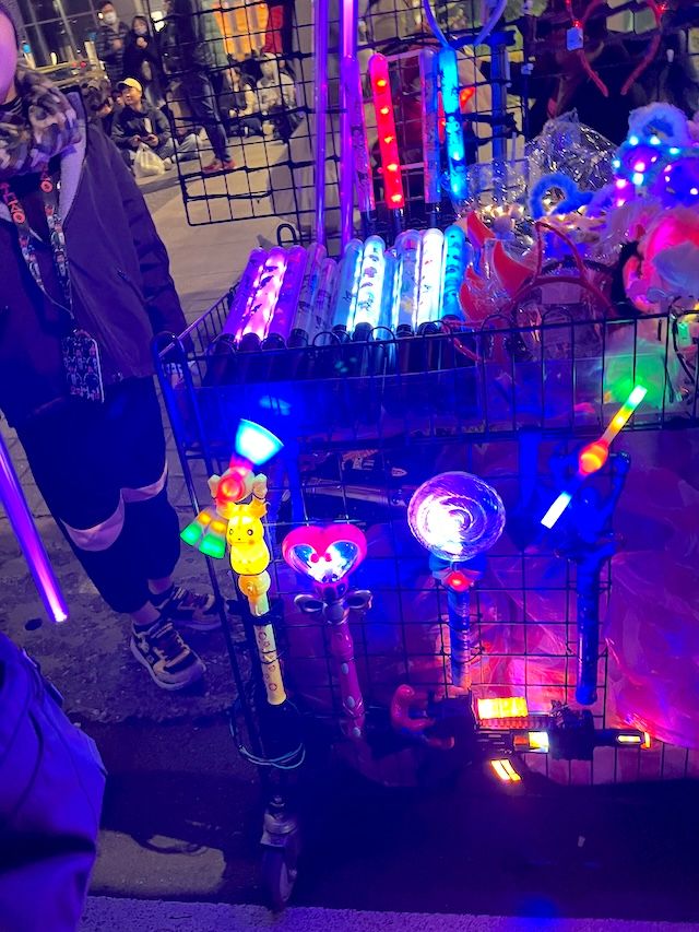 他にも周辺には光るおもちゃなどが販売され、カウントダウンの雰囲気を楽しむムードが醸成されています。暗くなったら早めに購入して、記念写真を撮るのもいい思い出になります!