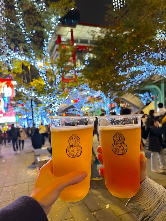 年越しの待ち時間は、暇を持て余しますよね? そんな時間も楽しみましょう! おすすめは食事をテイクアウトして待ちながら食べること。近くにあるクラフトビール屋さんは、カウントダウンを楽しむ人向けにテイクアウト用カウンターを用意し、ビールを販売しています。