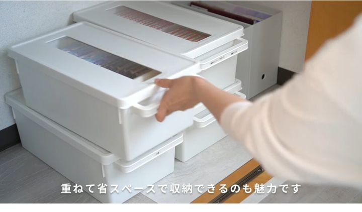 漫画を収納するときは、どの作品が入っているか外側から見えることと、ケース同士を重ねてコンパクトに片付けられることが大切。