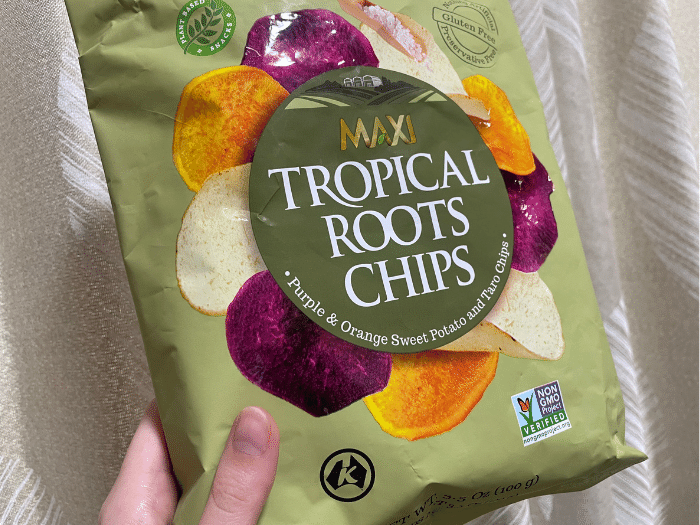 ヘルシーなスイーツを探しに成城石井へ行った際、お目当てのものがなくてがっくし…。そんなときにお菓子コーナーを眺めていて見つけたのが、「MAXIトロピカルルーツチップスクラシックシーソルト」。原材料がじゃがいもではない、次世代のチップスのようです。早速自宅にいるときのおやつとして食べてみました!