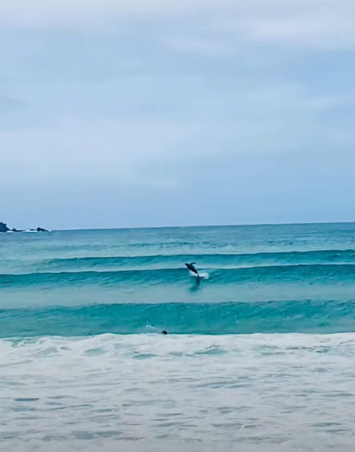 サーフィンを楽しむサーファーたちで賑わう海。 しかし波に乗っているのは人間だけではありませんでした!!