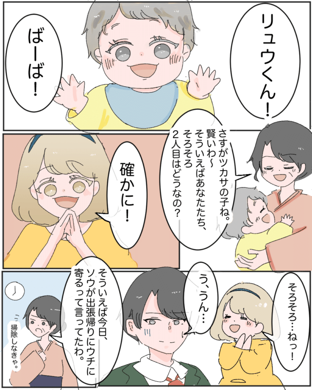 「ばーばー」リュウはお義母さんの事がとっても好きみたい。「さすがツカサの子ね。賢いわ~。そう言えばそろそろ2人目はどうなの?そろそろじゃない?」