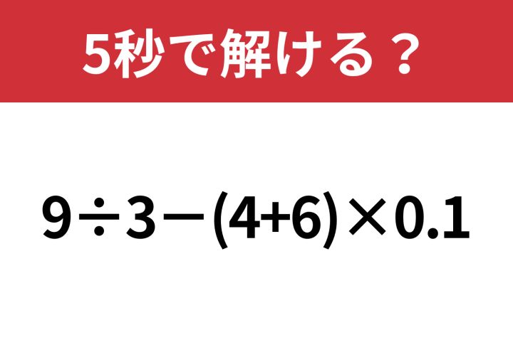 大人でも解ける人は少ないかも!?「9÷3−(4+6)×0.1」5秒で解ける?
