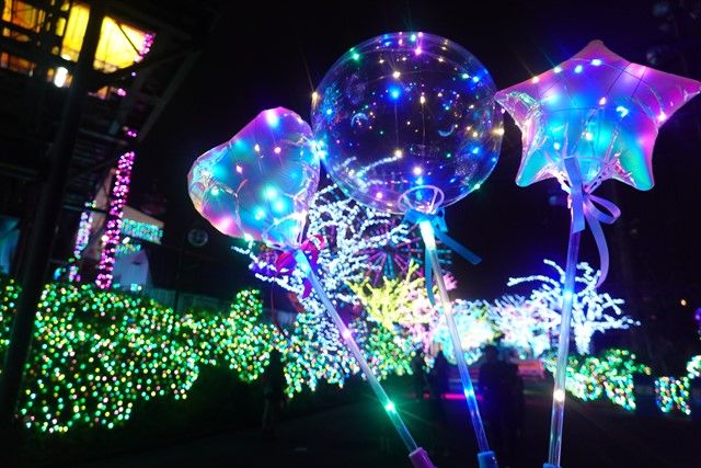 これを持ちながらイルミネーションを背景に撮影すれば、写真映えするはず。ゴムではなくビニールなので、何度も空気を入れることができ、再訪するときも持参したいアイテムです。