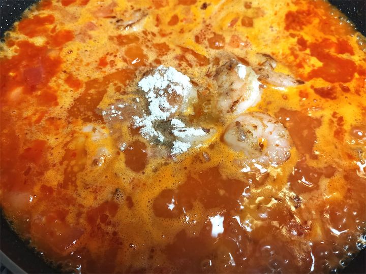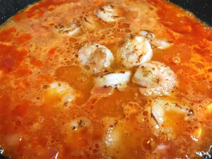 9. フライパンにエビを戻します。