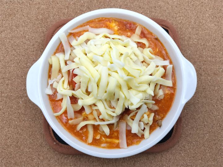 中華の定番であるエビチリをグラタンにしてしまうという大胆な発想ですが、食べてみるとおいしくてご飯がどんどん進みます。