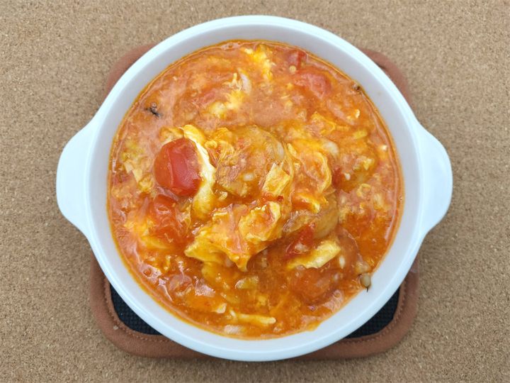 エビチリがおいしいのはもちろんですが、そこに生のトマトとチーズというまるでイタリアンな相性のよい組み合わせが加わることで辛さに酸味とコクが追加され、さらにおいしいぜいたくな一品が出来上がりました。