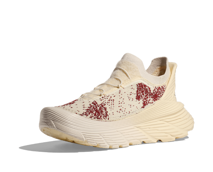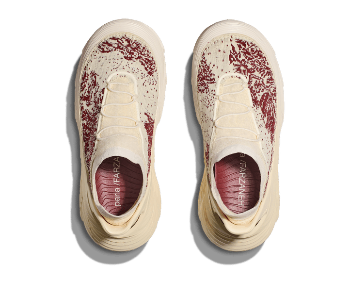 「RESTORE CHUKKA PARIA FARZANEH」には、細やかなジャカードモチーフ、豪華なモヘアのディテール、ジグザグに配した伸縮性のあるシューレースを採用しています。これらすべてには、Farzanehのルーツであるイランのヘリテージが織り込められています。また、高めの履き口とより構築的なシルエットが、HOKAのリカバリーラインに芸術性と機能性を融合させています。「RESTORE CHUKKA PARIA FARZANEH」限定のCREAMとCHOCOLATEの2色展開です。