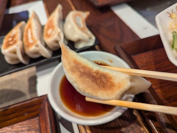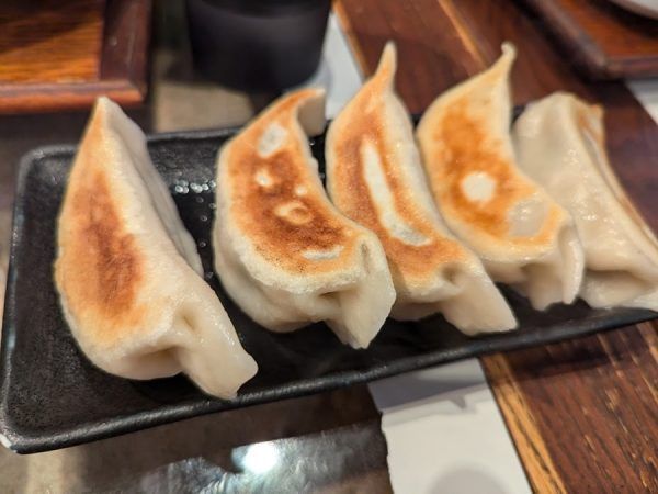 手作りの生地は少し厚みがあってモッチリ系。 ニラもたっぷり入っていましたよ。 お肉たっぷりでジューシーな餡で食べ応えばっちり。