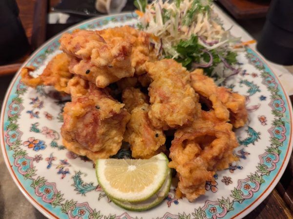 そしてからあげ。 お皿にいっぱい盛られていてまさかのボリュームにびっくり。 お箸で持ったときのずっしり感。