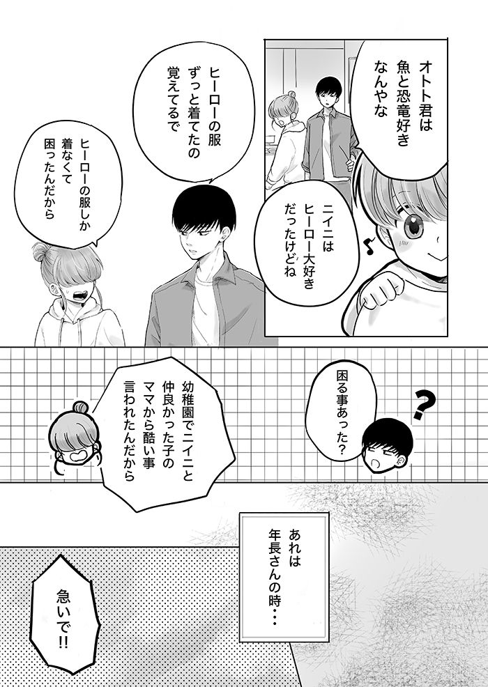 3. 「いつも同じ服着てますよね、なんか、可哀そう」幼稚園のママに言われた言葉。今思い出すと…【10歳差兄弟!ぼくのニイニは高校生・28】