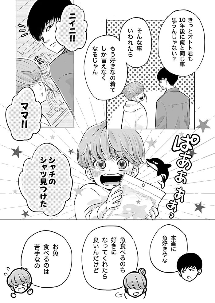 10歳差兄弟のニイニとオトト君。16歳のニイニは弟思いの優しいお兄ちゃんだけど、思春期まっただなかの高校生でもあり……。今回は、前回の続き、ニイニが小さかった頃の服の話です。