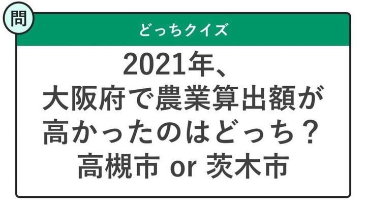 【どっちクイズ】2021年、大阪府で農業算出額が高かったのはどっち?高槻市 or 茨木市