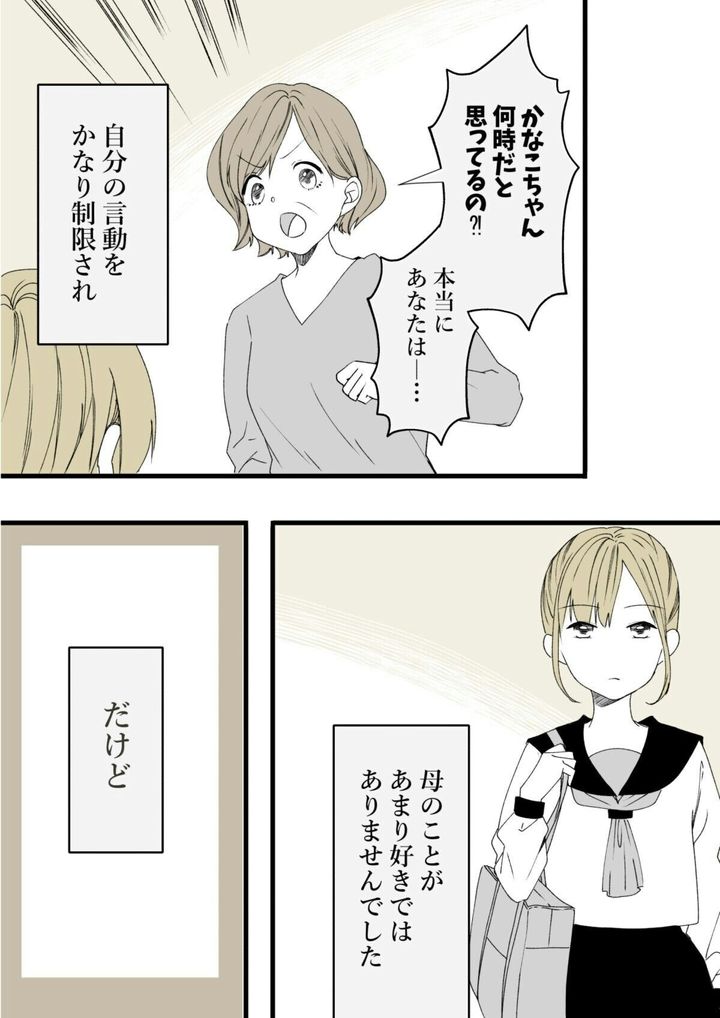 主人公・かなこは自分の母親があまり好きではありませんでした。何事も心配症で自分の行動を制限するような母親を「過干渉」だと思っていたからです。
