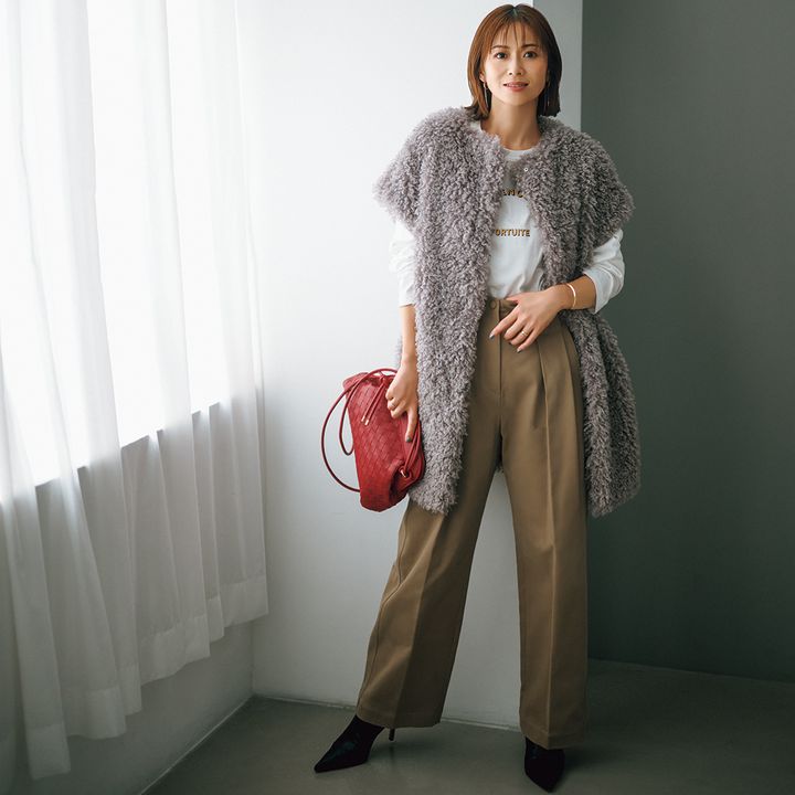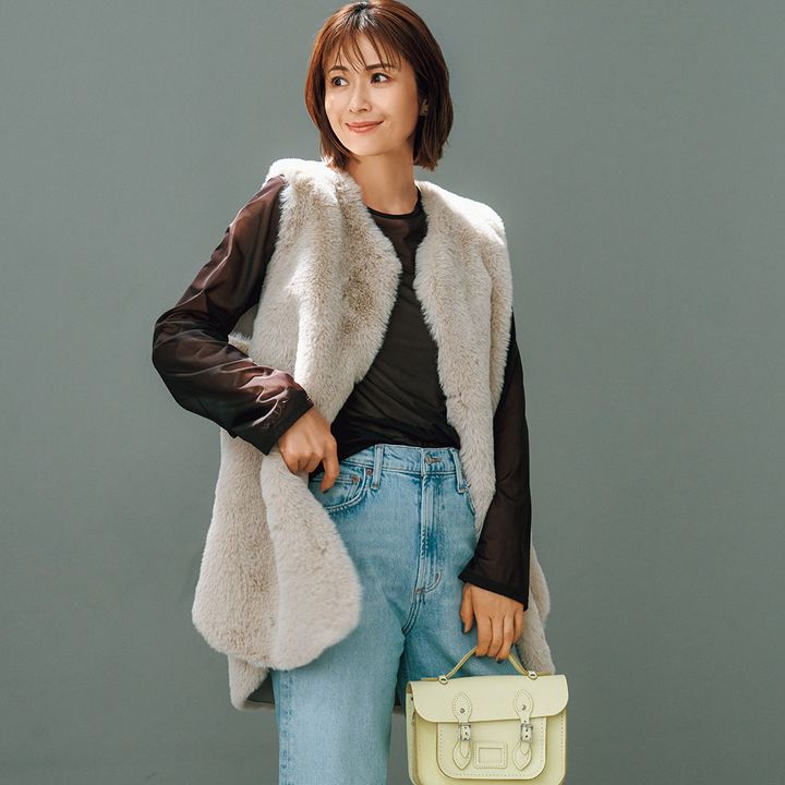 3. ボア、ジレetc.羽織るだけで今っぽくなれる!40代のための「映えアウター」4選