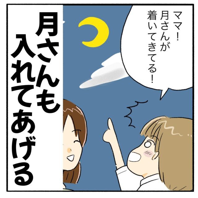 家に到着すると、「おうちまで月さん着いてきた!ボクのお家に入りたいのかな?」と目をキラキラさせながら言う息子。