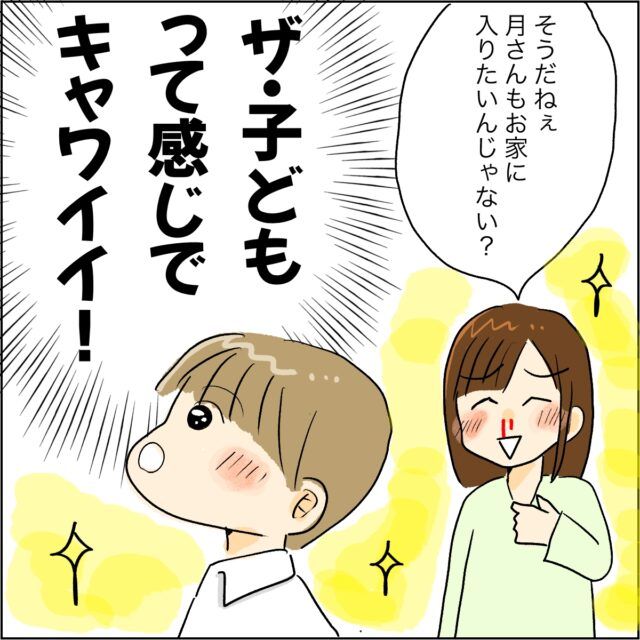 「そうだねぇ。月さんもお家に入りたいんじゃない?」と返しつつ、サ・子どもという感じの可愛すぎる息子に悶絶したのでした。