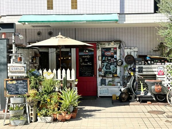 大阪メトロ長堀鶴見緑地線今福鶴見駅4号出口から徒歩2分、ミスタードーナツ今福鶴見店のすぐ近くにこちらのお店があります。 お店の前にあるグリーンにほっこりしつつ、なんだかかわいい店構えでワクワクします。季節の良い晴れた日には外のテラス席が設置され犬と一緒に食事をすることもできるそうで、ペットフレンドリーなお店です。