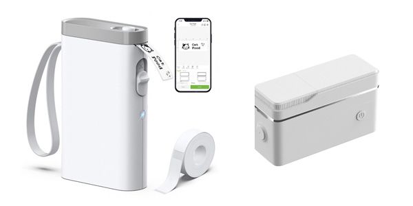 ラベルシールを手軽に作ることができる、2種のプリンター。デザインや文字はスマホ操作で簡単に設定可能。コンパクトなサイズで軽量、充電式だから持ち運びも便利です。