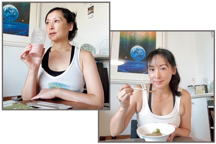 左:プロテインにクレンズパウダーを。お通じもいい感じに。