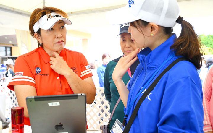 大会期間中、肌診断コーナーに福嶋晃子プロが訪れました。「女子シニアエキシビションマッチ」にも出場した福嶋プロは、レギュラーツアー通算24勝、レジェンズツアー1勝を挙げている、女子プロ界のレジェンドのひとり。アマチュア女子ゴルファーとしては、日夜紫外線と戦う福嶋プロの肌状態も、日ごろのお手入れも気になる所です。