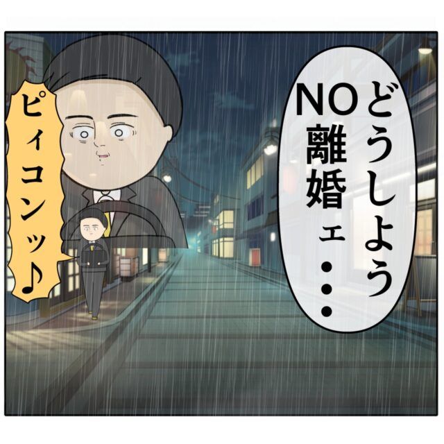 「どうしよう。NO離婚・・・」作戦が失敗し離婚になるかもしれないと落ち込む良し男さん。すると、すみれさんから返信が届きました。