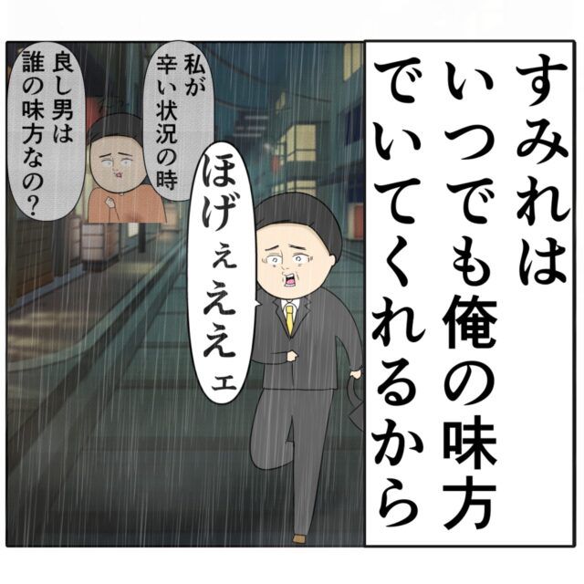 「すみれはいつも俺の味方でいてくれるから」良し男さんはすみれさんの待つ自宅に向かって走り出します。