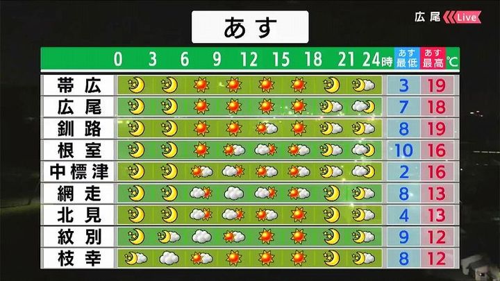 多少くもる程度で、日差しが出るでしょう。オホーツク海側の最高気温は13度ですが、これで平年並みなんです。太平洋側は高めの気温が続きます。