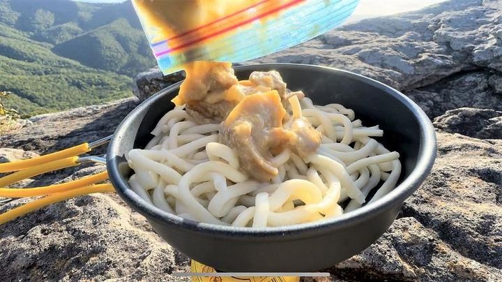 3. 【「山と食欲と私」コラボ企画③】マンガになった私のレシピをついに山で実食!「馬力」が出るスタミナうどんは味変も最高だった