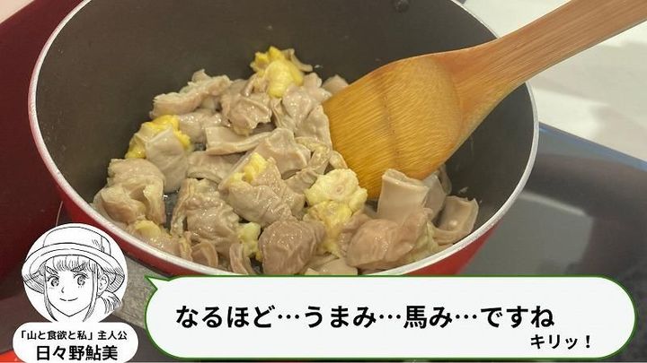 煮込むと黄色い脂が浮いてきて、まさに「なんこ」。うまみ(もとい「馬み」)、出てますね!ぷるぷるツヤツヤですよー!