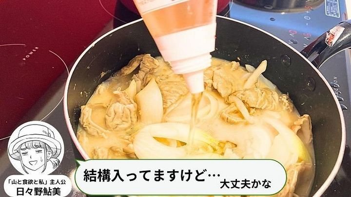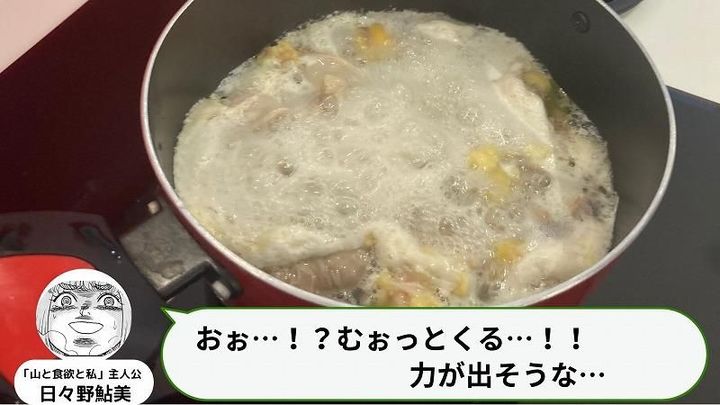 ▼【「山と食欲と私」コラボ企画③】マンガになった私のレシピをついに山で実食!「馬力」が出るスタミナうどんは味変も最高だった