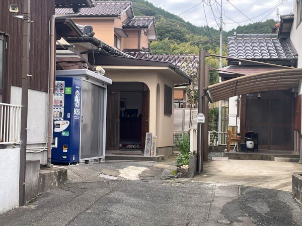 ここは街の中心部からちょっと離れた閑静な住宅街です。こんなところにお店があるの?という場所で、隠れ家という表現がピッタリなワクワク感Maxのロケーションです。駐車場で車から降り、前方を眺めたのが上の写真です。