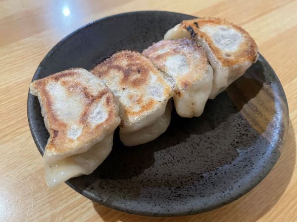 餃子は皮が肉厚でモチモチ、中は熱々ジューシー。お肉の比率高めで、香味野菜が良いアクセントです。 サイズ的にもちょうど良く、あっという間に完食です。たぶん、一人一皿が標準だと思います。