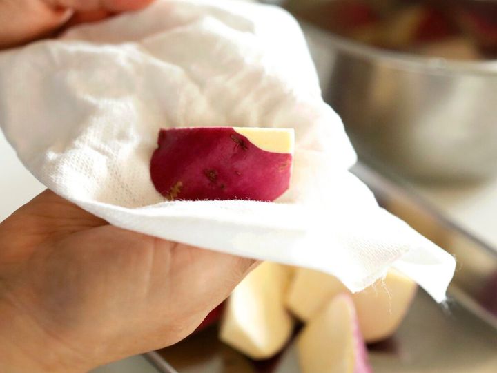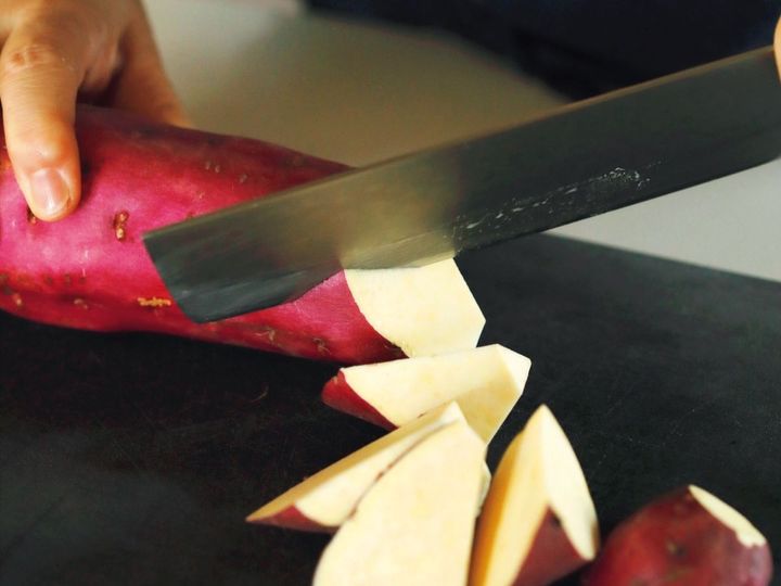 さつまいもはよく洗い、皮ごと乱切りにする。