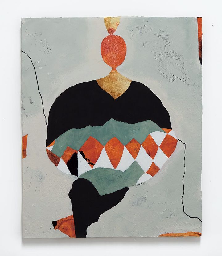Jun Tsunoda. reincarnation. 2024. Acrylic, Japanese lacquer, oil pastel and plaster on wooden panel. 660 × 530 mm. Courtesy of the artist.