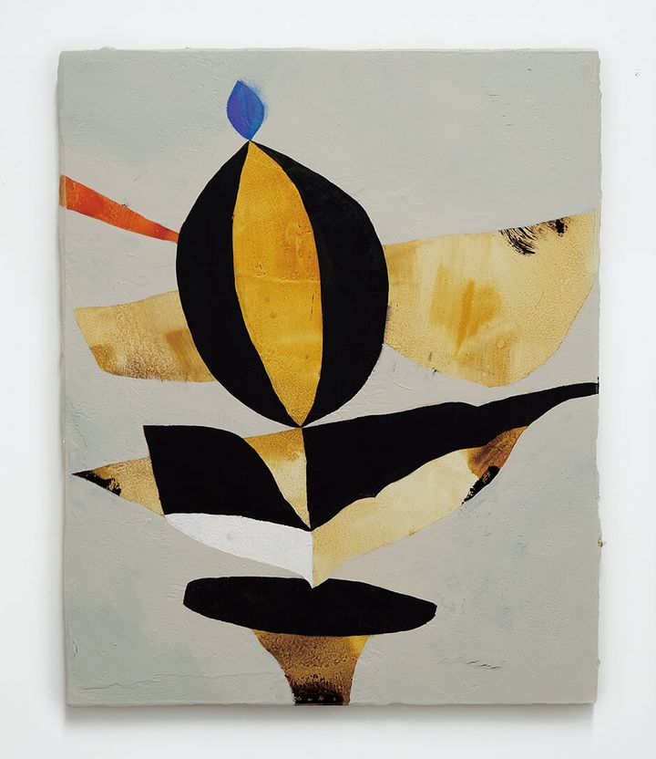 Jun Tsunoda. garden. 2024. Acrylic, Japanese lacquer, oil pastel and plaster on wooden panel. 660 × 530 mm. Courtesy of the artist.