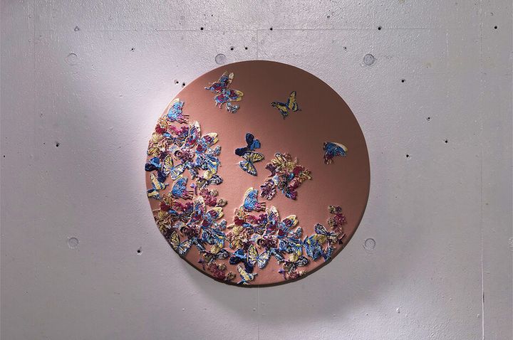 「DESIGNART TOKYO」に初の出展となる今回は、刺繍インスタレーション作品「Flow and Movement」、「Butterfly Camouflage 」 、「Circulation」を展示する。