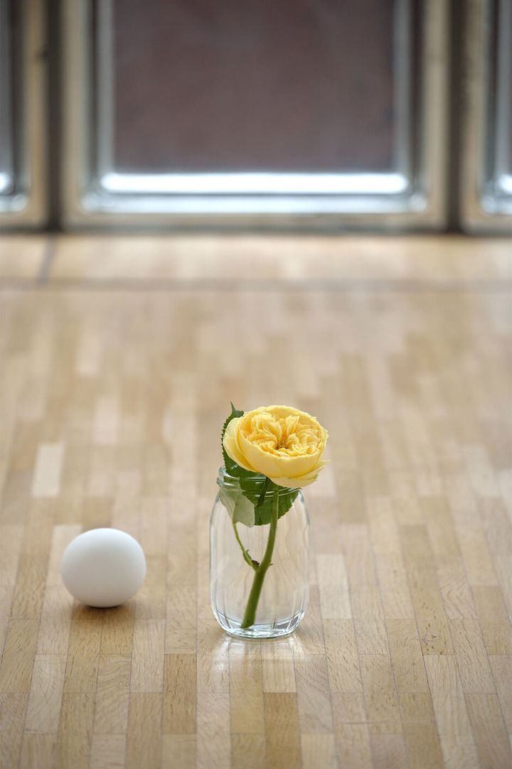 低い位置に設置された「座」には実際に腰をかけることで、向かいに位置する花などの作品に同じ目線で対峙でき、より没入的な生の体験へと誘われる。