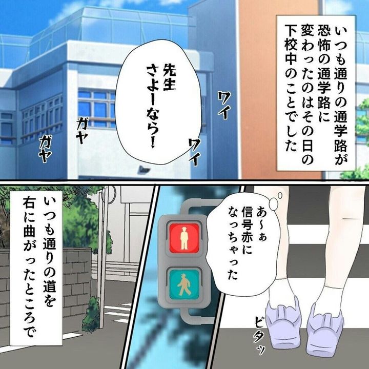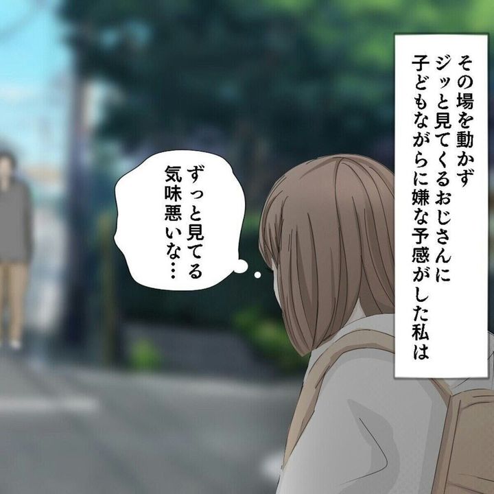 下校時に自分をじっと見てくる男性に気づいた少女。無表情で見つめてくる男性は見るからに不審な様子に見えます。