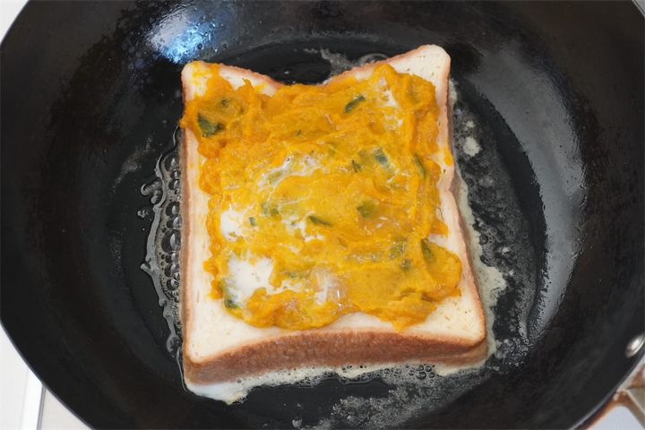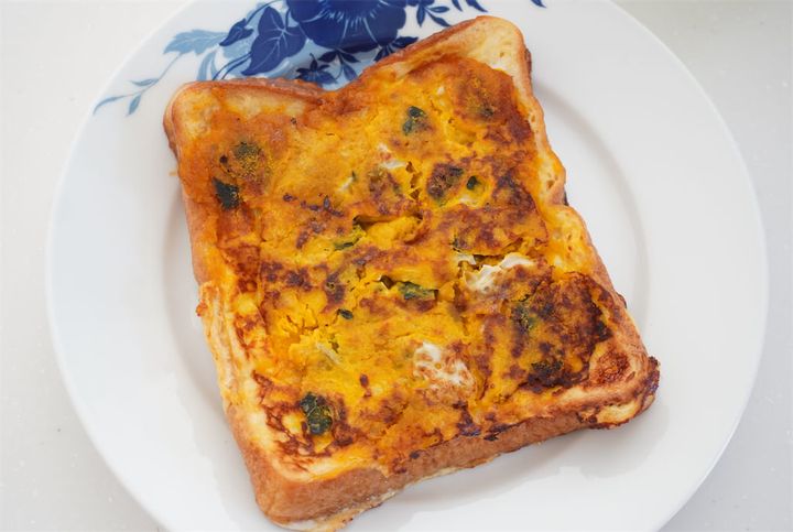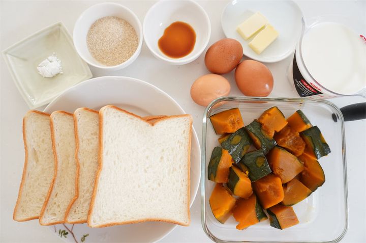 1.かぼちゃの煮物はつぶして食パンに乗せる。