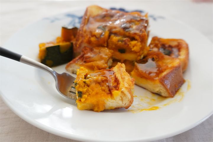 3. かぼちゃの煮物が余ったら「フレンチトースト」にすべし!みたらし餡で至福~♡【農家直伝】