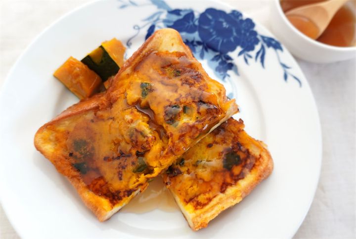 弱火でじっくり焼くのがコツ!「カボチャの煮物でフレンチトースト」
