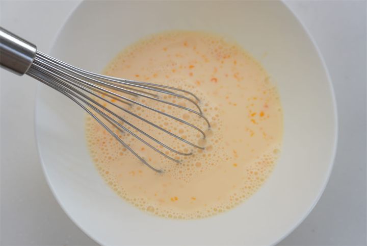 2.卵と牛乳をボウルに入れて混ぜ合わせ、卵液を作る。