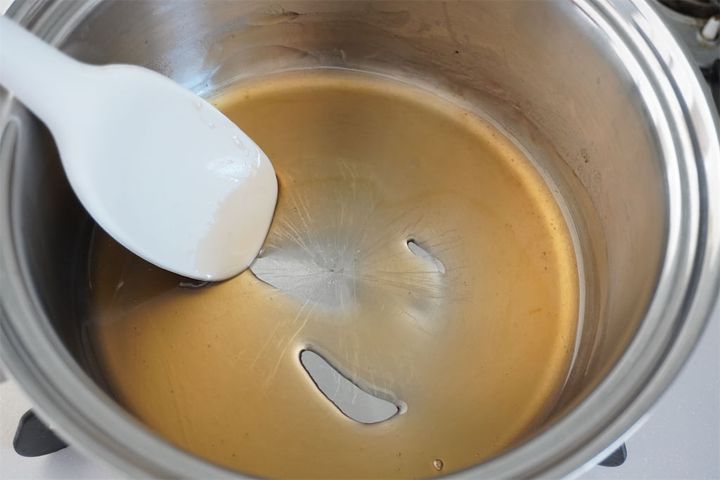 混ぜながら加熱して透明になったら火を止めて「みたらしあん」の完成。